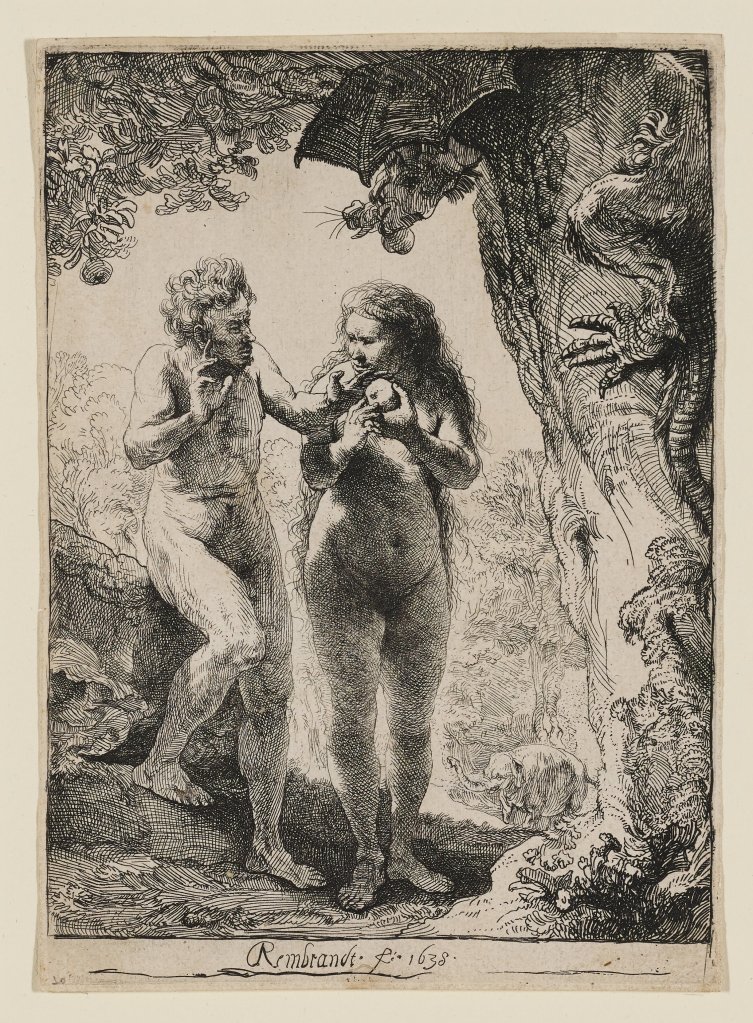Rembrandt จิตรกรดัตช์ ได้สร้างภาพ Hansken ไว้หลายภาพเช่นกัน ภาพ ๆ หนึ่งเป็นภาพร่างของ Hansken (ภาพ 5) ภาพนี้ Rembrandt น่าจะได้ร่างไว้เมื่อตอนที่อยู่ในเมือง Amsterdam ในปี 1637 ซึ่งเป็นปีที่ Hansken มาแสดงตัวใน Amsterdam ด้วยเช่นกัน มีความเป็นไปได้ว่า Rembrandt น่าจะเห็น Hansken ตัวเป็น ๆ และได้ร่างภาพนี้ไว้ อีกภาพหนึ่งในปี 1638 เป็นภาพสลัก Hansken ที่กำลังย่างกายเข้ามาด้านหน้าของภาพ ซึ่งมี Adam & Eve และมังกรชั่วร้ายปรากฏอยู่ (ภาพ 6) ภาพ ๆ นี้เป็นภาพหนึ่งที่แสดงให้เห็นความหมายแฝงของช้างในช่วงเวลานี้ หากไปดูใน Physiologus ซึ่งเป็นหนังสือว่าด้วยสัตว์และคำสอนทางคริสต์ศาสนา(Physiologus นั้นเป็นต้นแบบให้กับ Bestiary หรือตำราสัตว์ในช่วงยุคกลาง) จะพบว่าช้างกับมังกร (หรืองู) นั้นเป็นสัตว์คู่อาฆาตกัน ช้างที่เป็นตัวแทนของความดีและมังกรที่เป็นตัวแทนของความชั่วร้ายจะสู้กัน และในที่สุดช้าง (ความดี) จะชนะและฆ่ามังกรชั่วร้ายตายในที่สุด[9] ช้างจึงเป็นเสมือนผู้ปกป้อง Adam & Eve จากความชั่วร้ายของมังกร ความหมายแฝงเช่นนี้น่าจะเป็นที่รับรู้โดยทั่วไปและได้ถูกถ่ายทอดผ่านงานศิลปะของ Rembrandt
